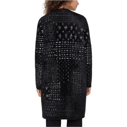 The Liverpool Los Angeles Petite Long Sleeve Collarless Open Front Sweater Coat shows off the chic combination of a coat and a cardigan. A 'coat' that caters from balmy nights to the evening chill, this knee-length coat is perfect for layering. The jacket comes with an open-front design, long sleeves, and an allover pattern. Featuring a black and white patchwork pattern, this coatigan pairs well with denim, trousers or leggings!