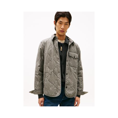 Tommy Hilfiger men's jacket. This lightweight quilted shirt jacket is crafted from peached, garment-dyed cotton for exceptional softness and rich, one-of-a-kind color.