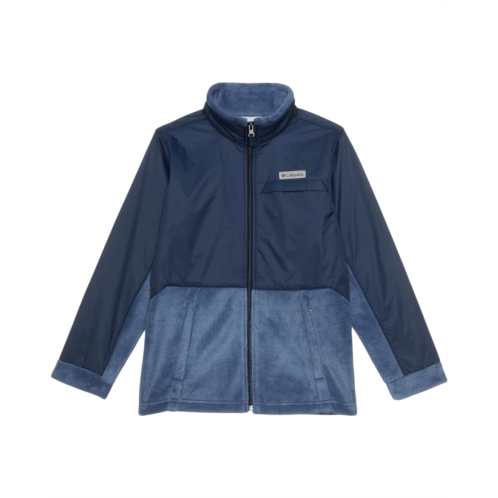- Featuring Omni-Shield advanced repellency overlay for added comfort and protection, the Columbia Kids Steens Mountain II Overlay jacket keeps your kid comfortable and dry all day. The polyester MTR filament fleece fabric of the jacket offers long-lasting warmth while the zippered front closure locks out the elements. This zip-up jacket is designed with long sleeves, a collared neckline, and a straight hem.