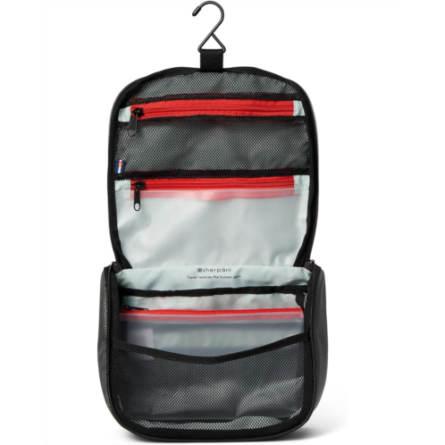 - Say goodbye to messy counters and hello to the Sherpani Co-Pilot Travel Toiletry Case, your go-to for stress-free travel organization. Crafted from durable recycled polyester, this compact case is loaded with smart storage: a front zipper pocket, hanging hook for vertical access, and a flap with both mesh and clear zipper compartments. The roomy main compartment features four slip pockets and three mesh slip pockets to keep your essentials sorted. A removable wet pouch handles spills with ease, while a key leash adds extra convenience. Whether you're hopping hotel rooms or living out of a suitcase, the Co-Pilot's haul handle and hang-anywhere design make transitions seamless.