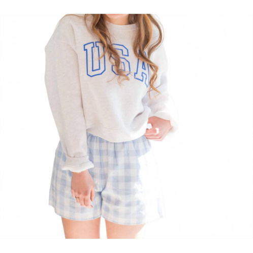 [US] By Together woven gingham wide leg shorts in blue