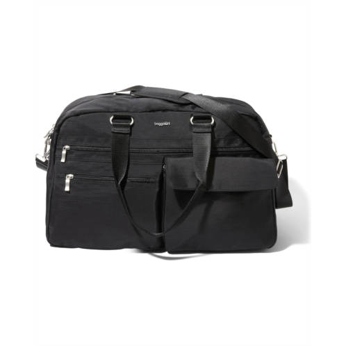 - Meet the Baggallini Modern Everywhere Travel Duffel, your new go-to for stylish, organized travel. Crafted from lightweight, durable nylon with a smooth polyester lining, this sleek companion offers one roomy main compartment and five well-placed pockets to keep everything in check. A trio of exterior pockets provides instant access to must-haves like your ID, boarding pass, or lip balm. The zippered closure ensures your belongings stay secure on the go, while the adjustable strap delivers all-day carry comfort. Traveling with a rolling suitcase? The clever back sleeve slides effortlessly onto your luggage handle for smooth, hands-free transit.