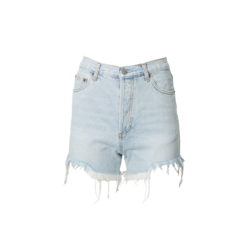 [US] By Together distressed frayed high-rise denim shorts in light blue