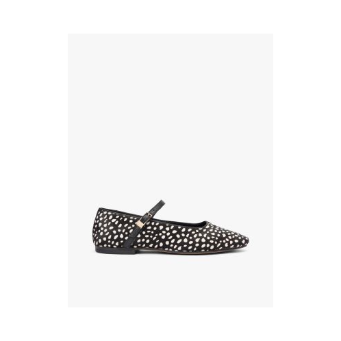Tommy Hilfiger women's shoe. Take your new-season wardrobe to the next level with these calf hair flats. The classic Mary Jane vamp and round toe deliver on timeless appeal, while the textured finish and spotted deer print make a statement.