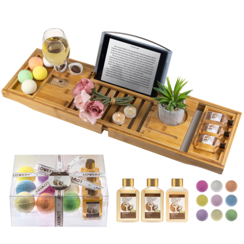 [US] Lovery premium bamboo bathtub caddy gift set - expandable tray