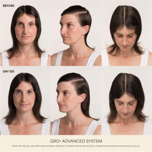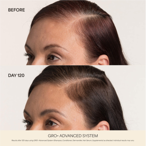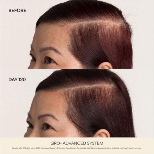 Clinical Results: In a 120-day clinical study of 40 participants using GRO+ Advanced Hair Serum once daily: