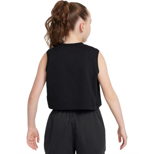 - Lightweight cotton keeps this cropped Nike Kids Tank Top soft and comfy. Designed to fit loose, it offers more room through the body so your little one can move through your day with ease. It features crew neckline, sleeveless style, brand logo on the front, and straight hem.