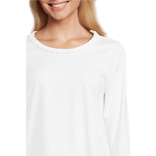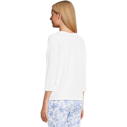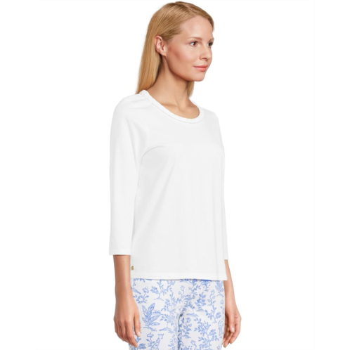 Accentuate a sleek style wearing Lilly Pulitzer Paulson Knit Top, crafted in a straight fit. The pull-on style top features a crew neckline, three-quarter sleeves, barnded hardware, and a braided trim.