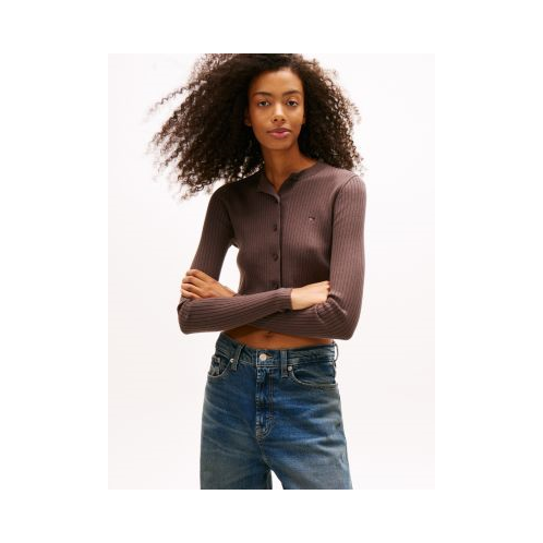 Tommy Hilfiger women's sweater. This cute cropped cardigan is designed in a trim fit with a soft ribbed texture. Made from fine-gauge combed cotton, this versatile layer keeps its shape and resists pilling. Part of our Tommy Jeans collection.