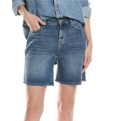 Introducing the 7 For All Mankind Boy Midelt Short, a denim icon that combines style and comfort for the modern woman. These shorts feature belt loops, whiskering and fading detail, and classic five-pocket styling for a timeless look. The inseam is approximately 7.25 inches with a 10.25-inch rise, perfect for everyday wear. Made from 99% cotton and 1% spandex, these shorts are designed for a flattering fit. The zip fly with button closure adds a touch of sophistication. Pair these shorts with your favorite top for a chic and effortless outfit. Machine washable and imported for your convenience. Model is 5'10 and is wearing a size 27. Measurements may vary slightly by size. Elevate your summer wardrobe with the 7 For All Mankind Boy Midelt Short.
