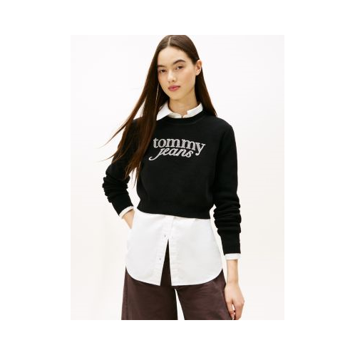 Tommy Hilfiger women's sweater. Our plush, extra-soft chenille sweater is designed with our script logo. Cut in a slim, cropped fit, this style works especially well with high-waisted silhouettes. Part of our Tommy Jeans collection.