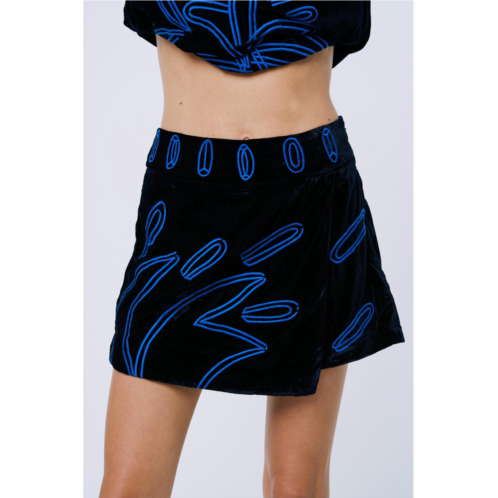 [US] CIEBON rena embroidered velvet skort in navy