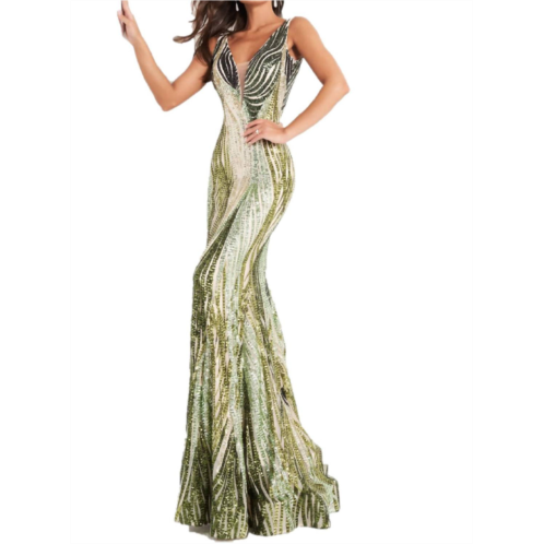 [US] JOVANI long fitted sequin mermaid prom dress in green