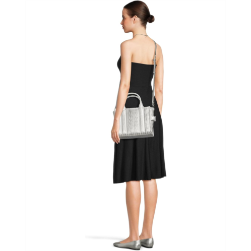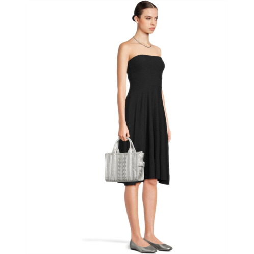 - Exude the winsome and graceful look carrying the Marc Jacobs The Small Tote. This handbag features the two top handles, zippered closure, one main compartment, and allover illustrating brand detailing.