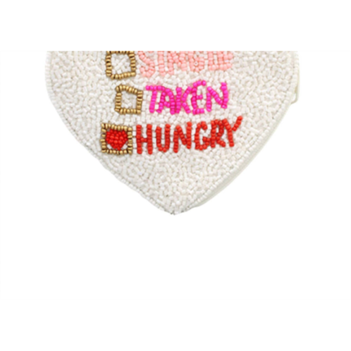 Elevate your accessory game with this sophisticated wallet, meticulously designed to offer a perfect balance of style and functionality. Its sleek appearance and multiple compartments make organizing your cards and cash effortless.Single? Taken? Nope... just Hungry. Because sometimes, hunger is the only status that matters. It's the perfect accessory for those who appreciate a good laugh and a handy spot for their coins. Sized at 5' x 5'.