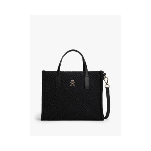 Tommy Hilfiger women's bag. Our mini tote is made from durable nylon with an allover, topstitched monogram design and premium leather trimmings for an elevated feel. It's sized for the essentials and finished with a detachable strap for optional shoulder carry.