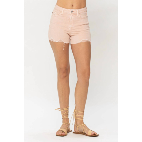 Jean shorts so versatile, you can literally wear them with anything.93% Cotton, 6% Polyester and 1% Spandex. Thesehigh waist shortsare so comfortable and have a fabulous stretch. Mid-rise. Wash on cold and hang dry. Measurements - FRONT RISE - 10'. INSEAM - 3 3/4'. Model is wearing Small [ Height - 5'8 Waist - 25' Hip - 36' ]