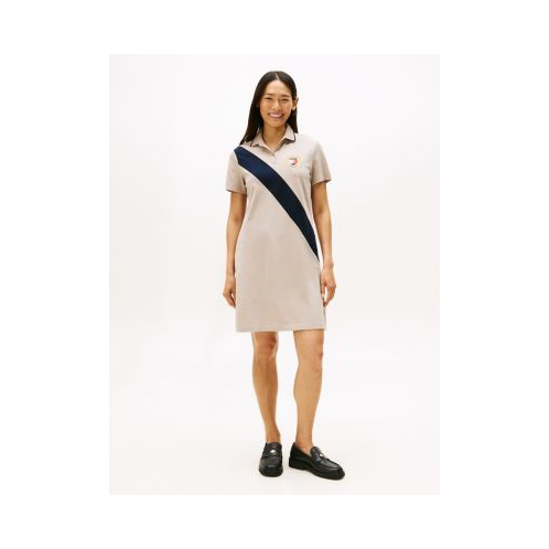 Tommy Hilfiger women's dress. Soft, stretch cotton in an easy cut makes this sporty polo dress a comfortable pick. The bold diagonal banner stripe makes it a memorable one.