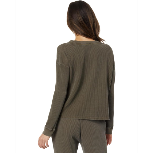 Get ready for an event wearing the Mod-o-doc Washed Waffle Long Sleeve Button Front Card Top. This soft and cozy silhouettecomes with a plunging V-neckline and long sleeves. Add this pullover styled top to your collection.
