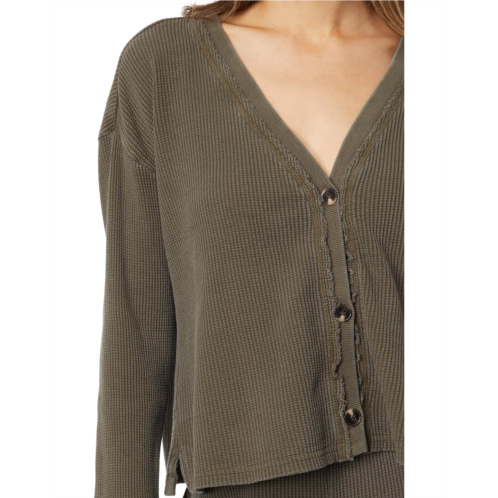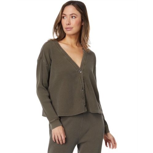 [US] Mod-o-doc Washed Waffle Long Sleeve Button Front Cardi