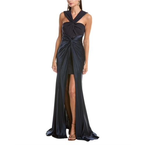 Introducing the stunning 'Cinq a Sept Dorit Gown' in Navy, a show-stopping addition to your eveningwear collection. This elegant gown features a wrap front detail, side slit, and a flattering silhouette that is sure to turn heads. Made from a luxurious blend of polyester, viscose, and elastane, with a silk combo and polyester/elastane lining, this gown is as comfortable as it is chic. The center back zip with hook-and-eye closure ensures a perfect fit, while the modern design embodies the brand's ethos of sophistication and ease. Elevate your look with the 'Cinq a Sept Dorit Gown' and make a statement at any special occasion.