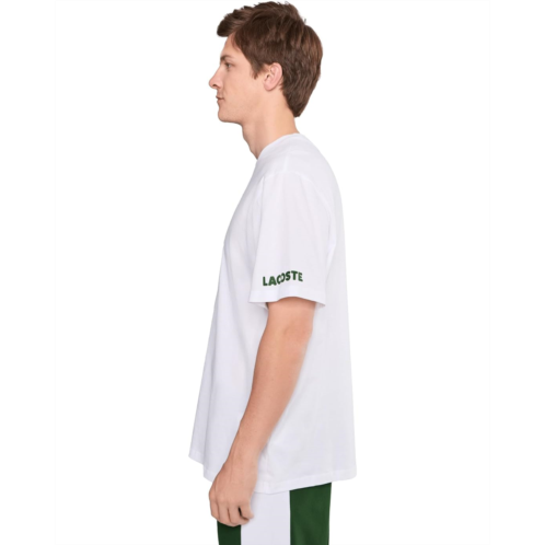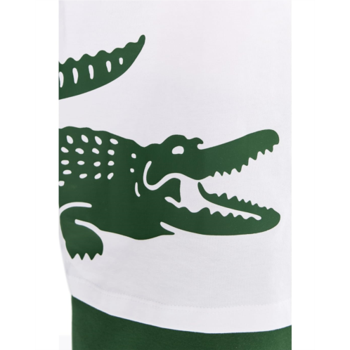 - The Lacoste Printed Cotton Loungewear T-shirt brings a modern twist to iconic heritage, making every moment feel casually elevated. Designed in a regular fit that moves with you, this tee features a classic crew neck and short sleeves for all-day comfort. The easy pull-on silhouette keeps things relaxed, while the soft cotton fabric delivers breathable ease whether you're lounging, layering, or stepping out. Part of the standout BIG CROC collection, it showcases a dynamic crocodile graphic and signature Lacoste branding, blending tradition with fresh contemporary flair.