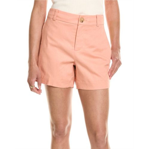 Introducing the Vince Casual Linen-Blend Short, a versatile and stylish addition to your summer wardrobe. Designed by the renowned brand Vince, known for its timeless and effortless California-inspired aesthetic, these shorts are perfect for the modern woman on the go.Crafted in a chic dark apricot clay hue, these linen-blend shorts feature classic details such as belt loops and four-pocket styling. The inseam measures approximately 5.5 inches with an 11-inch rise, offering a comfortable and flattering fit. Complete with a zip fly and button closures, these shorts are easy to slip on and off.Made from a blend of 53% linen, 44% viscose, and 3% spandex, these shorts are breathable and lightweight - perfect for staying cool in the summer heat. Simply machine wash and wear, these shorts are a low-maintenance addition to your wardrobe.Elevate your casual look with the Vince Casual Linen-Blend Short. Shop now and effortlessly embody laid-back California vibes.
