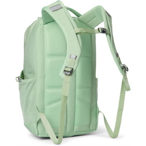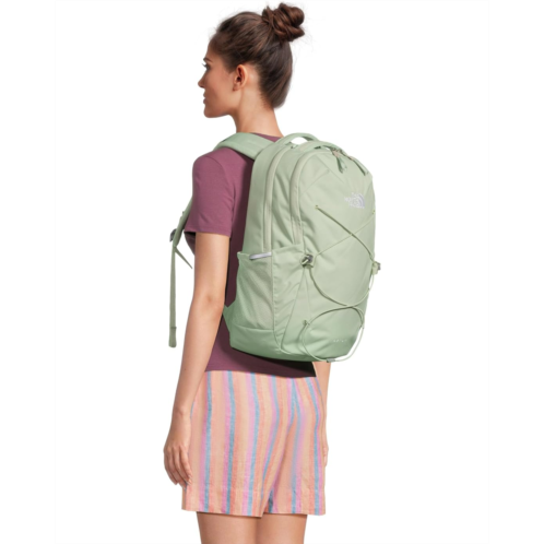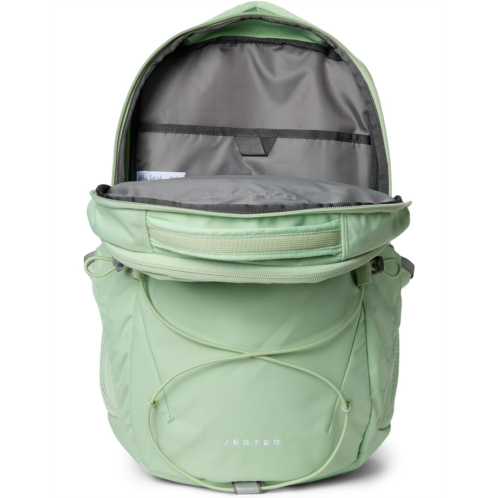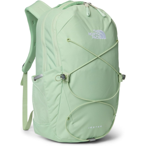 - Accredited by the American Chiropractic Association, The North Face Jester backpack is designed with a FlexVent suspension system that features a flexible yoke built from custom injection-molded shoulder straps, a padded back panel, and a highly breathable lumbar panel. This travel backpack comes with two padded shoulder straps and dual grab handles for easy handling. The front bungee system ensures additional storage while the stand-up design offers easier loading and unloading. Its front compartment comes with zippered pockets, a pocket sleeve, and a key hook. This backpack has a padded 16' laptop sleeve and sternum strap, offering 360-degree reflectivity. It is made from polyester fabric with a non-PFC DWR finish for long-lasting durability.