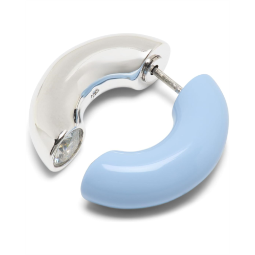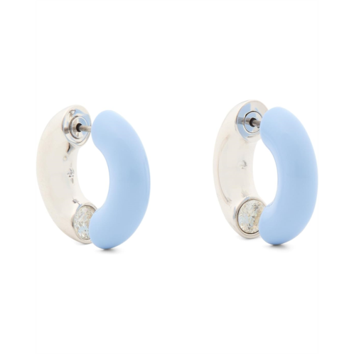 - Designed with interlocking links, Kate Spade New York Interlock Huggies make a bold, metallic statement with a brass construction complimenting a contrasting enamel. The interlock earrings feature a modern cubic zirconia for a polished appeal.