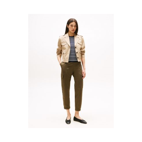 Tommy Hilfiger women's pant. Made from soft stretch cotton, these comfy high-waist joggers feature an elastic waist with a fixed, functional belt and sporty elastic cuffs. Easily dressed up or down, this versatile pair is ideal for travel or the office. Side pockets, a back welt pocket and handy cargo pockets at the legs add functionality to the flattering form.