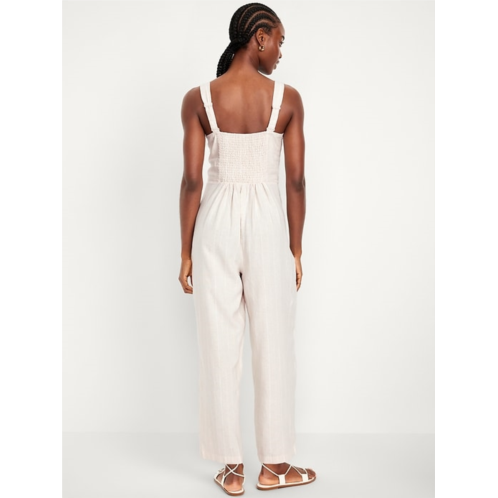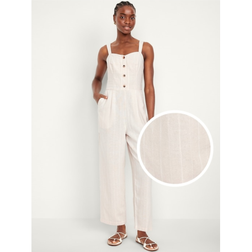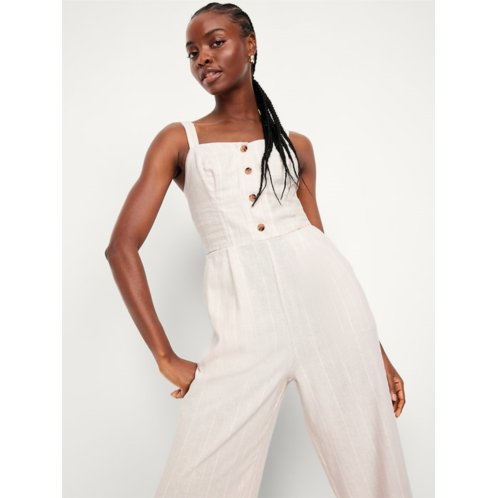 [US] OldNavy Button-Front Linen-Blend Cami Jumpsuit