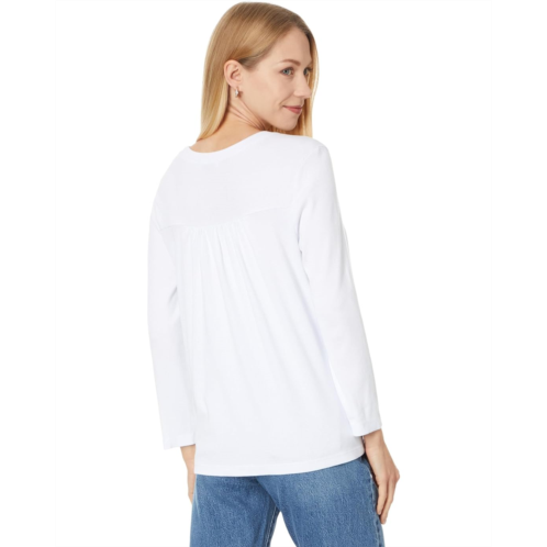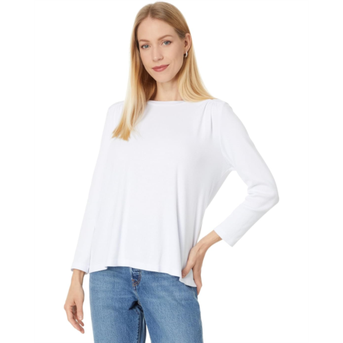 Ruched shoulder and back yoke detail give the Michael Stars Shelby Ruched Shoulder 3/4 Sleeve Tee an easy-breezy look. It features a crew neckline with three-quarter sleeves and an easy pull-on style.