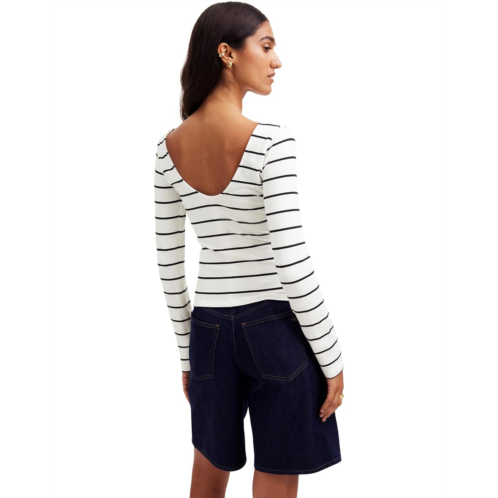 Add some versatility to your chic wardrobe styling with the Madewell Long Sleeve Ballet Back Tee. Featuring a crew neckline with a low scoop back, long sleeves and a straight hemline. Pair with your favorite skirt or jeans.