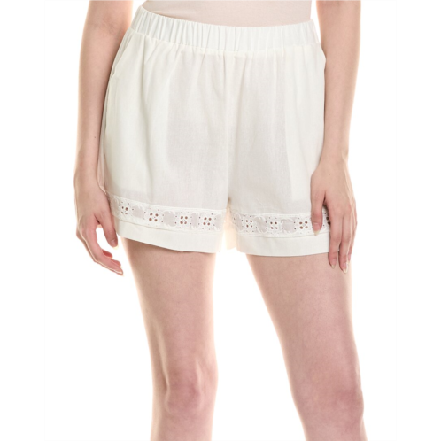 Introducing the Estellina Short from the renowned brand ESTELLINA. These stylish shorts are perfect for any woman looking for comfort and style. Featuring a beautiful white color with intricate embroidered trim, side pockets, and an elastic waist, these shorts are both fashionable and functional. The inseam measures approximately 3 inches with a 13-inch rise, making them the perfect length for any occasion.Made from 100% polyester, these shorts are easy to care for with a simple hand wash. The model is 5'10 and is wearing a size small, but please note that measurements may vary slightly by size.Imported and designed with quality in mind, the Estellina Short is a must-have addition to any woman's wardrobe. Shop now and elevate your summer style with these chic shorts.