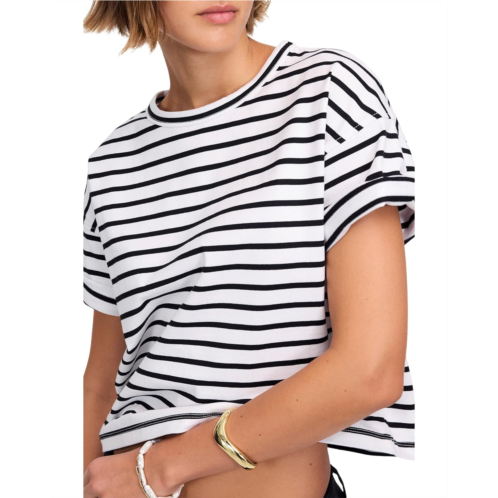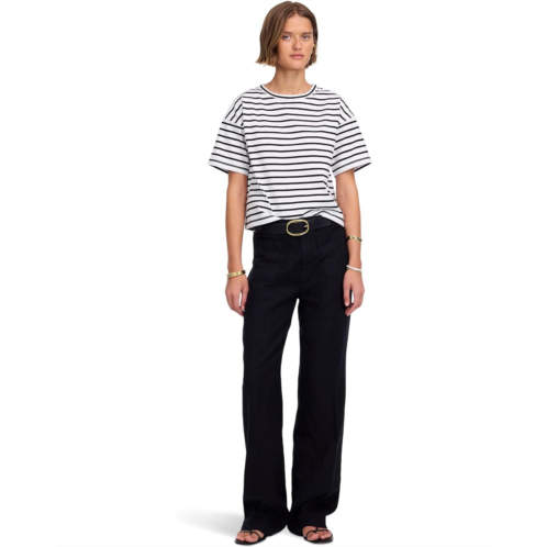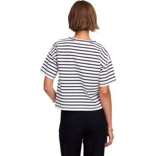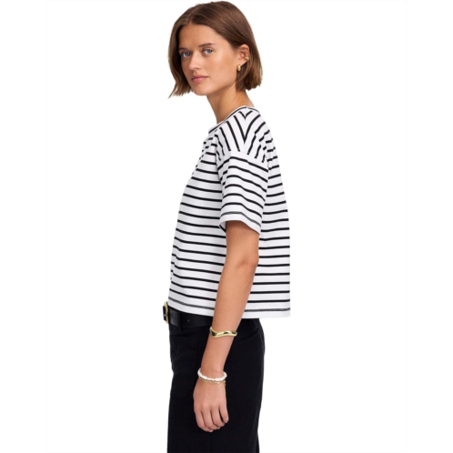 The Madewell Structured Boxy Tee Stripe is designed with a boxy, cropped fit and features a crew neckline, drop shoulder, and short sleeves.