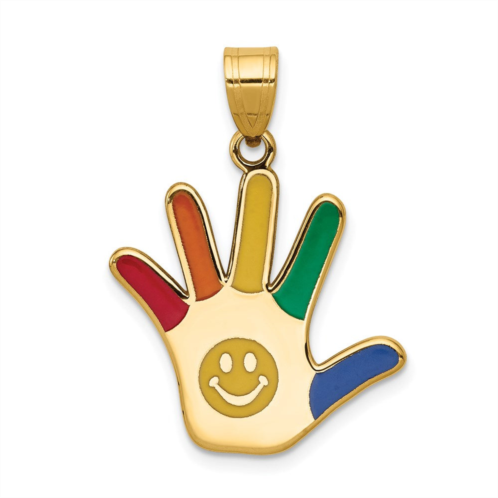 [US] Diamond2Deal 14k yellow gold enameled autism smiley face handprint pendant