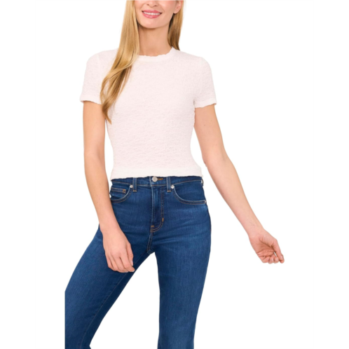 The CeCe Short Sleeve Puckered Knit Baby Tee offers a textured, snug fit that hugs your silhouette perfectly. Its puckered fabric adds a unique touch of dimension and style. Comfortable yet effortlessly stylish, this pull-on tee stands out with a scalloped crew neck and short sleeves.
