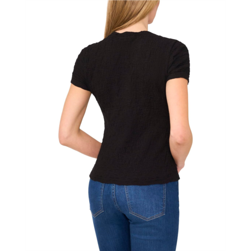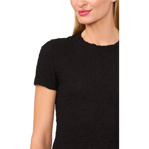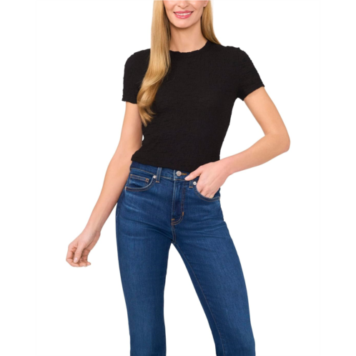 The CeCe Short Sleeve Puckered Knit Baby Tee offers a textured, snug fit that hugs your silhouette perfectly. Its puckered fabric adds a unique touch of dimension and style. Comfortable yet effortlessly stylish, this pull-on tee stands out with a scalloped crew neck and short sleeves.