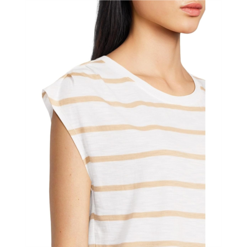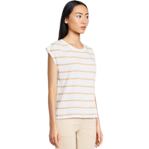 Showcase striped flair and modern finesse wearing the Sanctuary Pleated Muscle Tee. Designed with pleats atop each shoulder, this sleeveless tee offers a relaxed, boxy fit for easy movement. The crew neckline adds a polished touch, making it perfect for layering or wearing solo.
