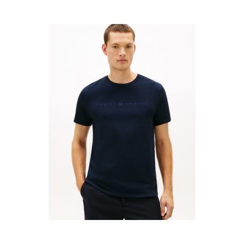 Tommy Hilfiger men's T-shirt. Our durable heavyweight cotton tee delivers a structured look that resists wear, tear and wrinkles. Finished with a tonal logo, it’s a signature staple built to last.