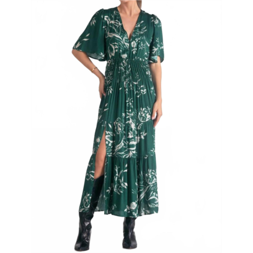 [US] ELAN short sleeve maxi v-neck tiered dress in jade toulouse