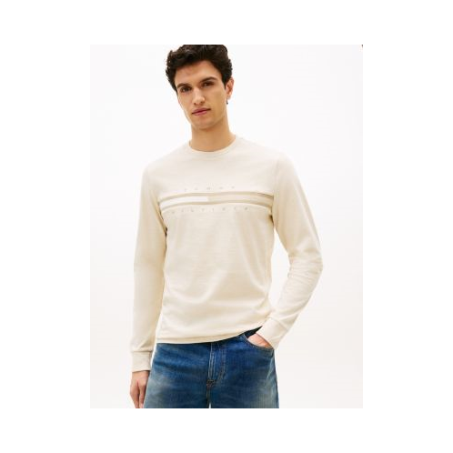 Tommy Hilfiger men's T-shirt. Made from premium cotton, this classic long-sleeve crewneck tee features a tonal play on our embroidered flag logo at the chest.