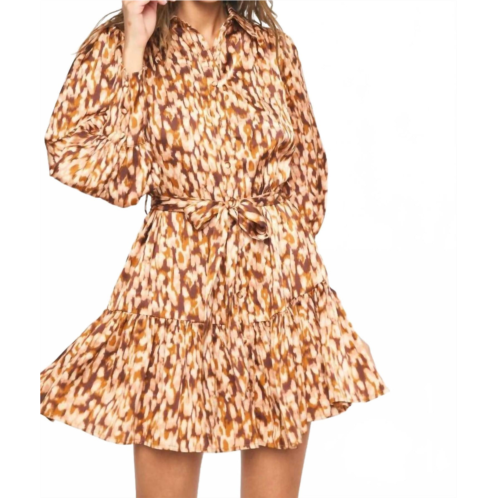 [US] Entro spotted waist tie dress in brown