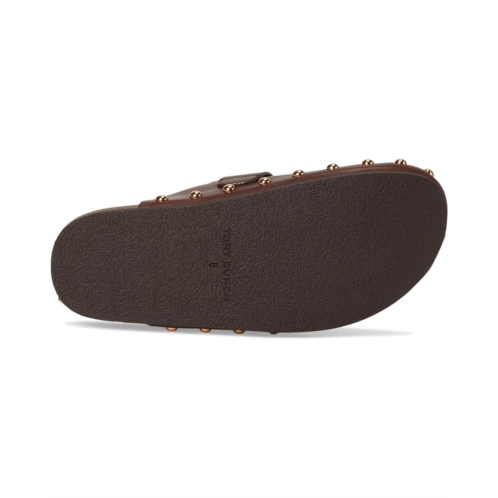 - Funky and comfortable, the Tory Burch Mellow Stud Mules are designed with robust leather and studded rivet-like hardware accenting the iconic metallic logo of the brand.