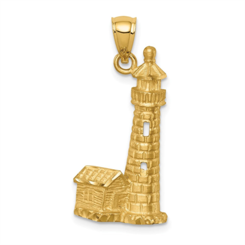 [US] Diamond2Deal 14k yellow gold brushed diamond-cut lighthouse pendant