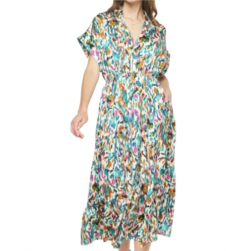 [US] Entro satin printed midi dress in ivory
