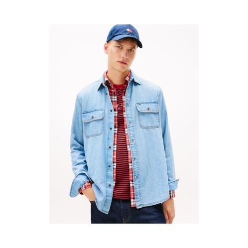 Tommy Hilfiger men's shirt. The timeless denim shirt is a wardrobe essential. Made from rigid cotton twill, this classic is cut in an easy, relaxed fit. Part of our Tommy Jeans collection.