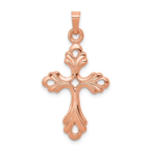 [US] Diamond2Deal 14k rose gold polished fleur de lis cross pendant