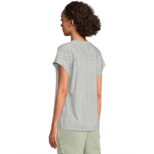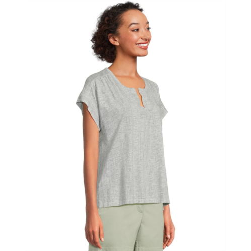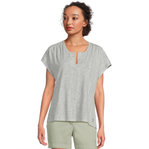 Elevate your warm weather looks in the Tommy Bahama Gem Coast Shimmering Bay Short Sleeve. This printed cotton blend jersey short-sleeve top offers a split neckline with stitching details on the shoulder, straight hemline and a classic fit silhouette.