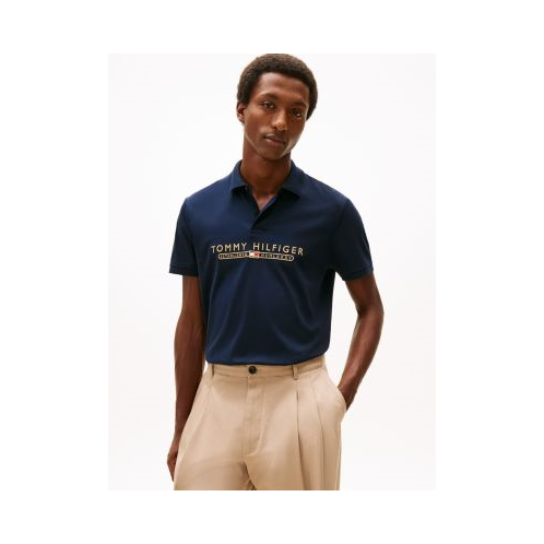 Tommy Hilfiger men's polo. A fresh spin on tradition, our polo is made from a double-knit interlock weave. This dense, two-sided fabric combines durability with a smooth, soft feel. An embroidered gold-tone logo adds Hilfiger style and an elevated touch.
